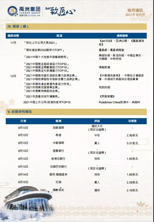 12月29日,由Roadshow China路演中、卓越IR主辦的第五屆卓越IR頒獎盛典在深圳舉行,禹洲集團獲得“2021中國上市公司-路演熱度榜TOP10”大獎。