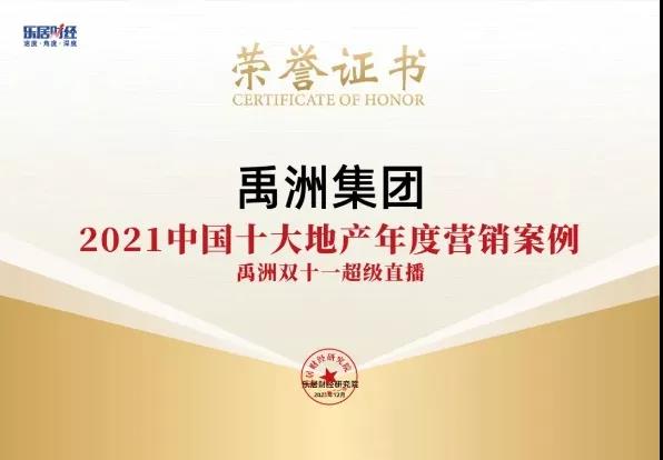 12月12日,禹洲集團憑借2021年在品牌樹立、營銷模式、營銷成本、產(chǎn)品宣傳定位、營銷創(chuàng)新等多個維度的優(yōu)秀表現(xiàn),于樂居財經(jīng)主辦,新浪財經(jīng)、中國企業(yè)家、中房網(wǎng)、中物研協(xié)聯(lián)合主辦的“中國地產(chǎn)新時代盛典”榮獲“2021中國十大地產(chǎn)年度營銷案例」?!爸袊禺a(chǎn)新時代盛典”在中國泛地產(chǎn)行業(yè)具有巨大影響力,獲此殊榮展示集團于2021年全年過人成續(xù),意義非凡。