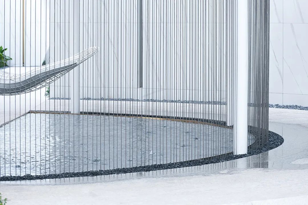 潺潺的溪泉以極優(yōu)美極寫(xiě)實(shí)的狀態(tài)被定格在了最優(yōu)雅的一瞬間,清水在其中流動(dòng),靈魂在其中交融。透過(guò)水流,洽談區(qū)呼之欲出,一個(gè)嶄新的藝術(shù)情境漸入佳境。