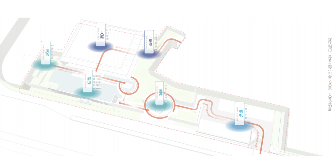 營(yíng)銷中心前場(chǎng)則給人眼前無(wú)限開(kāi)闊的感覺(jué),在飄渺的云煙中忽遠(yuǎn)忽近,若即若離,設(shè)計(jì)師希望通過(guò)更加廣闊的空間,令業(yè)主和來(lái)訪者都能看水天相接,無(wú)邊無(wú)垠。